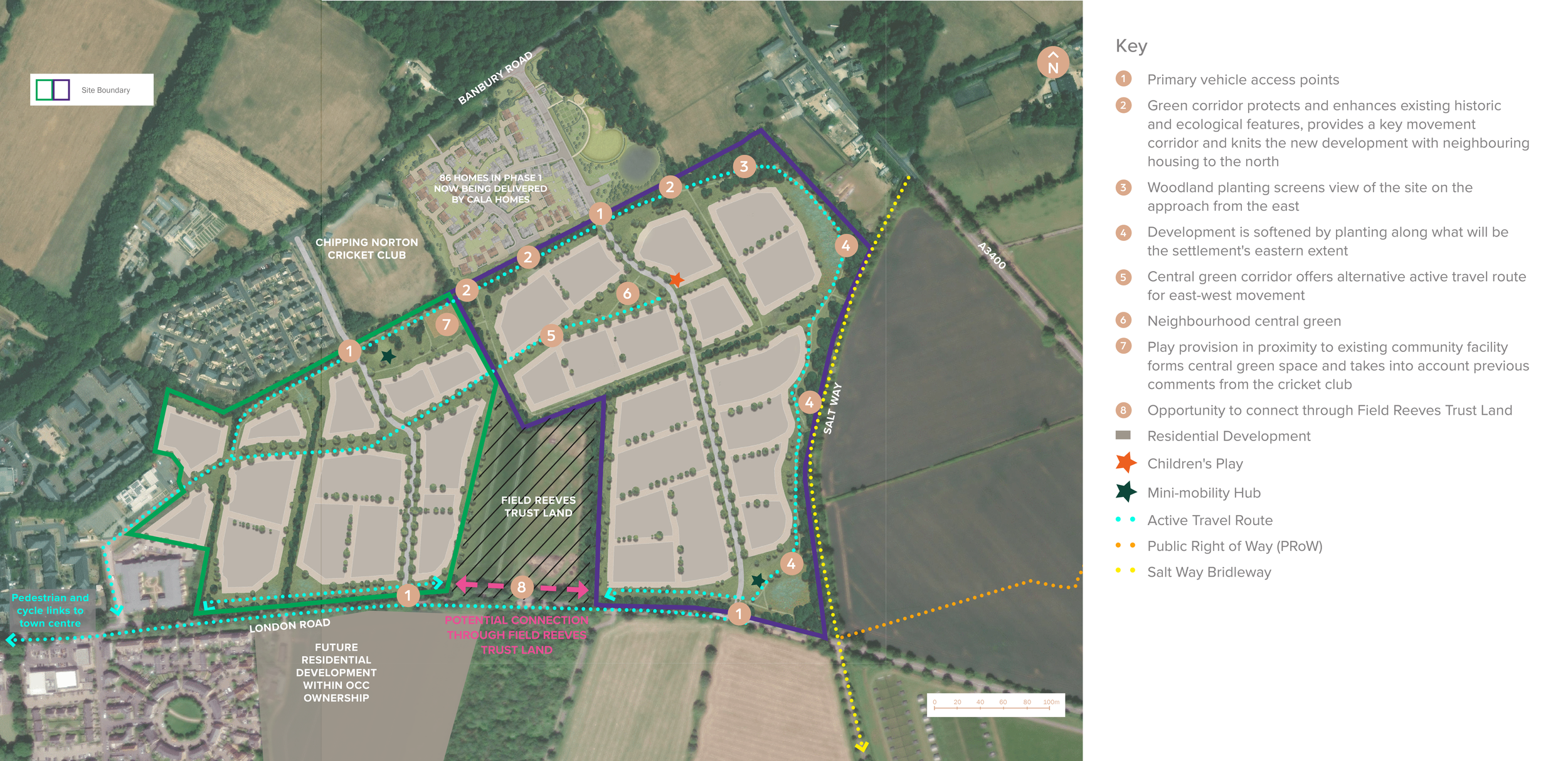 The development would include new and enhanced pedestrian and cycle routes, encouraging residents to travel by foot, bike, or public transport wherever possible. A co-ordinated design approach is being taken with OCC Property to support pedestrian and cycle connectivity to the town centre.